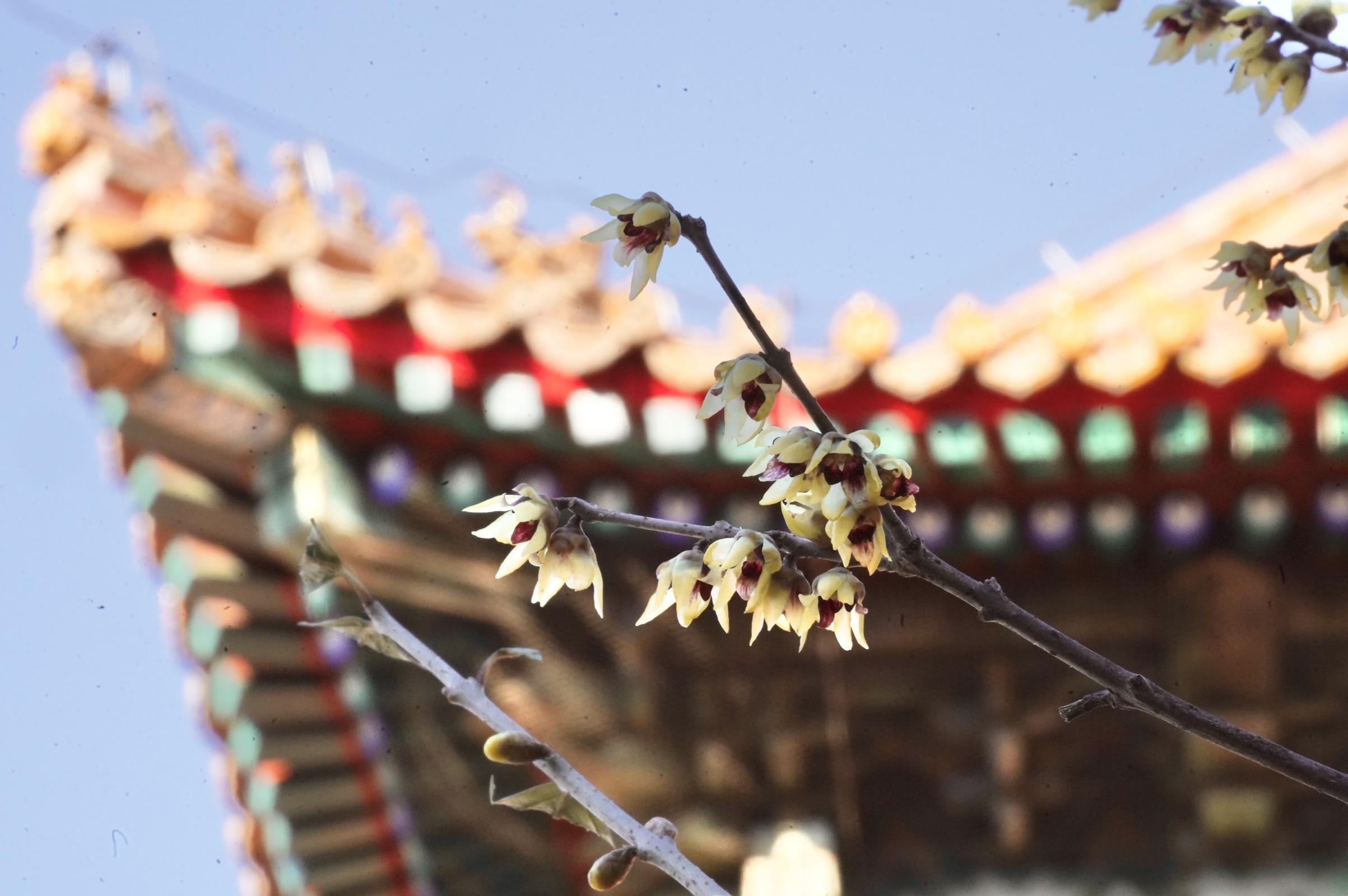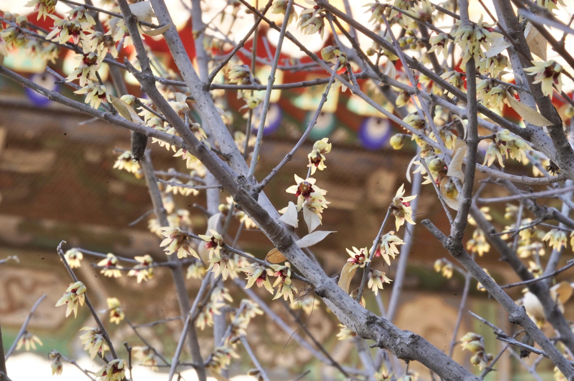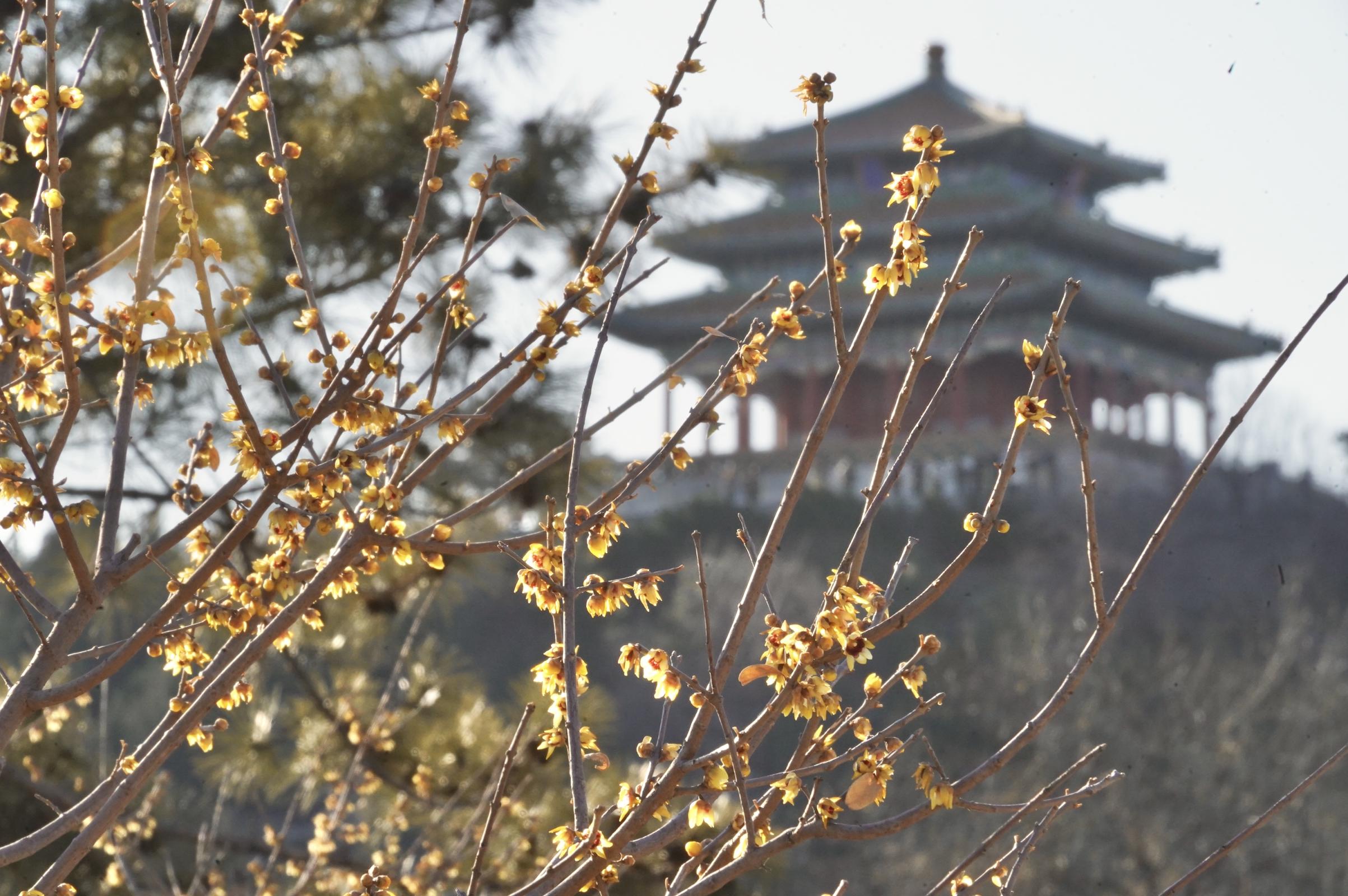 绮望楼东侧的蜡梅迎来了盛花期,满树繁花似锦,金黄的色彩与绮望楼相得益彰,为古建添加了一份春的气息,更显古朴典雅。