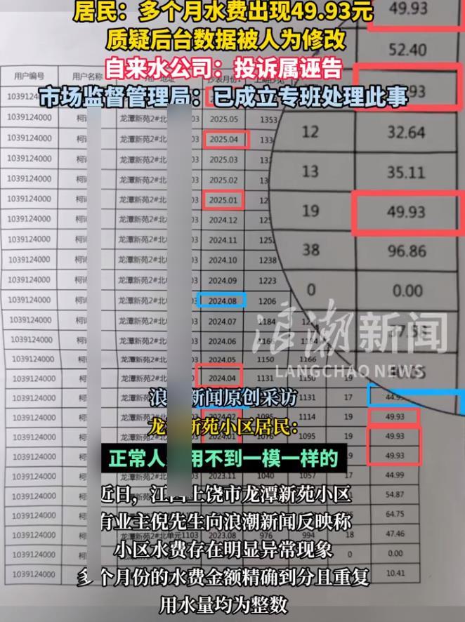 9月5日下午,记者致电上饶市自来水公司,相关工作人员对此回应称,该投诉属诬告,已由公安机关立案,国家信访平台亦在核查此事。该公司抄表员郑女士负责对该小区用户水表数据核对。她表示,小区采用智能水表自动传数据,非人工抄表,水费金额重复或因抄表间隔天数接近,属正常现象。