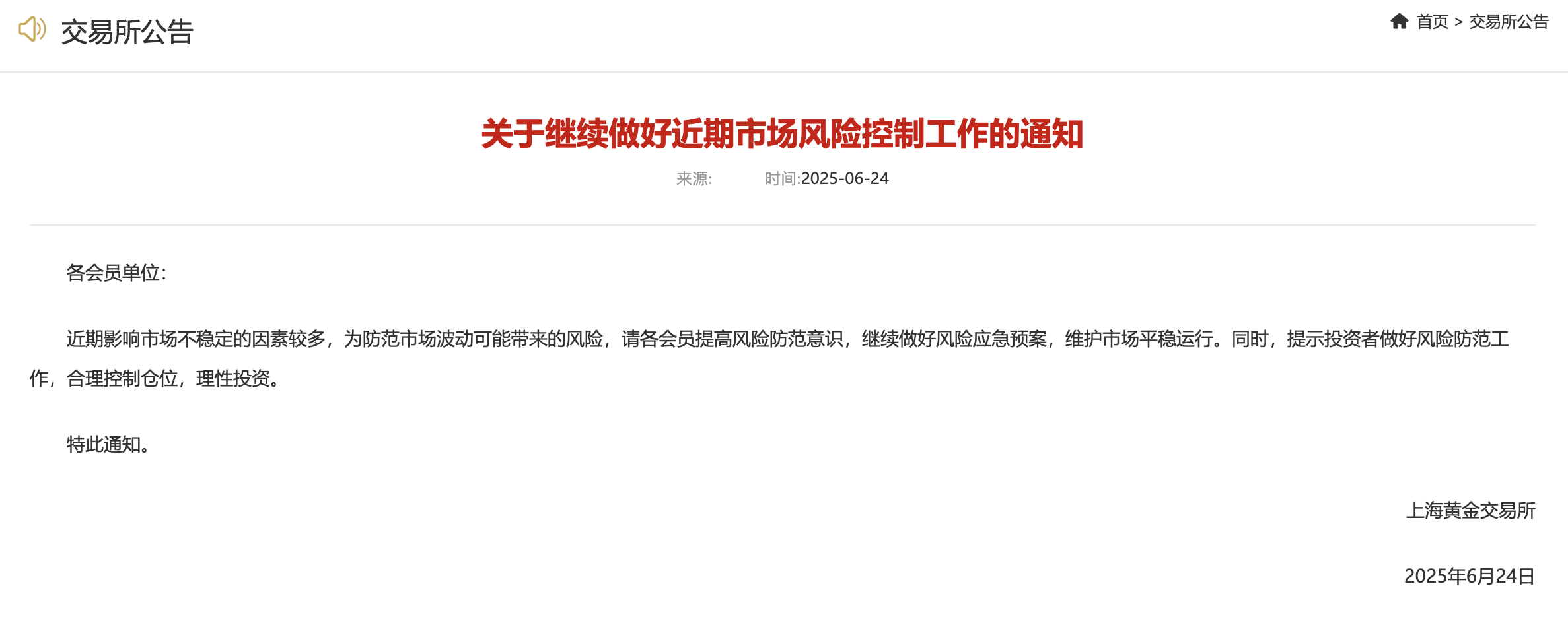 上金所发布关于继续做好近期市场风险控制工作的通知上金所发布关于继续做好近期市场风险控制工作的通知